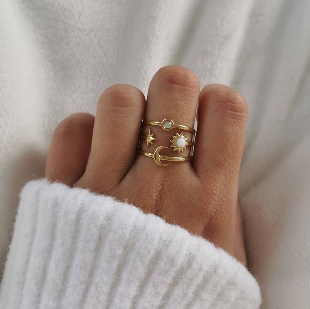 Sun Star Moon Ring - 18k gold Plated